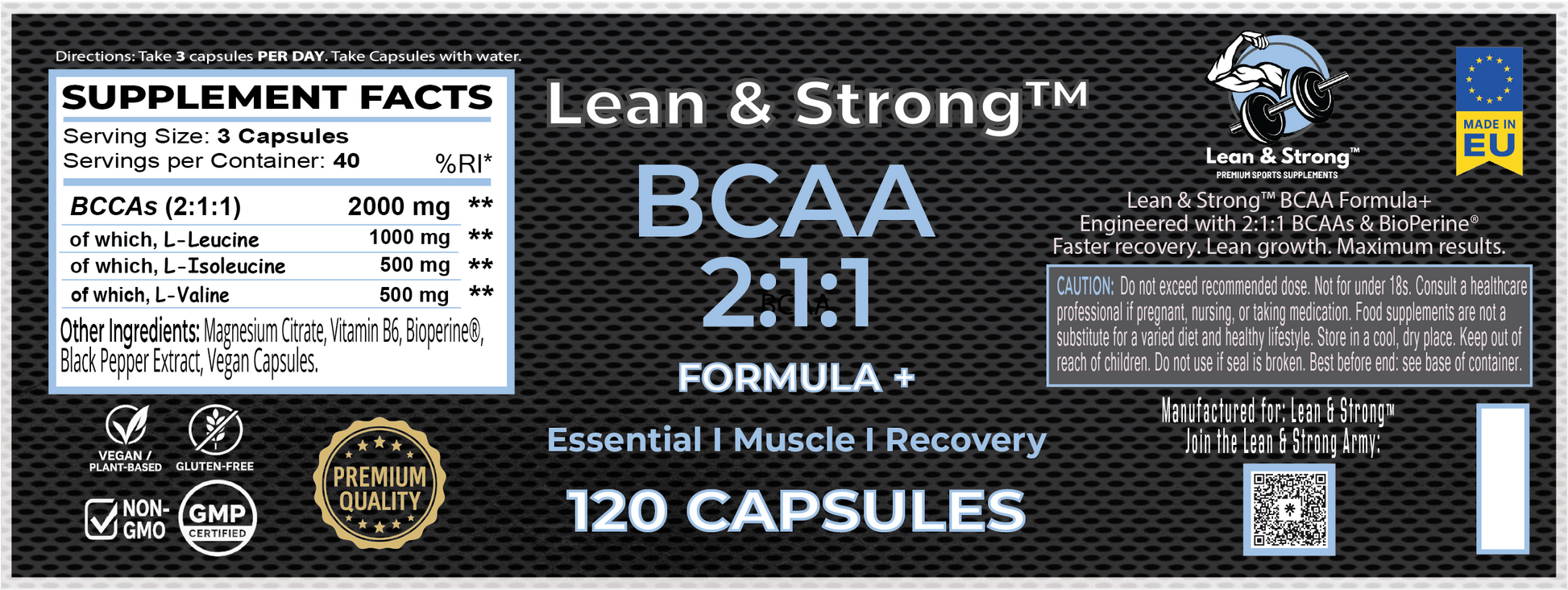 Lean & Strong BCAA – 120 Vegan Capsules | Muscle Recovery & Performance